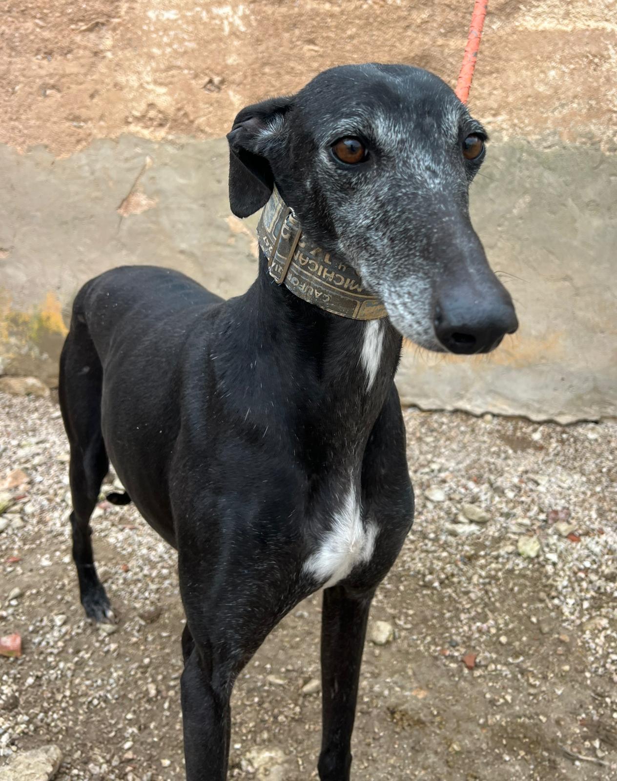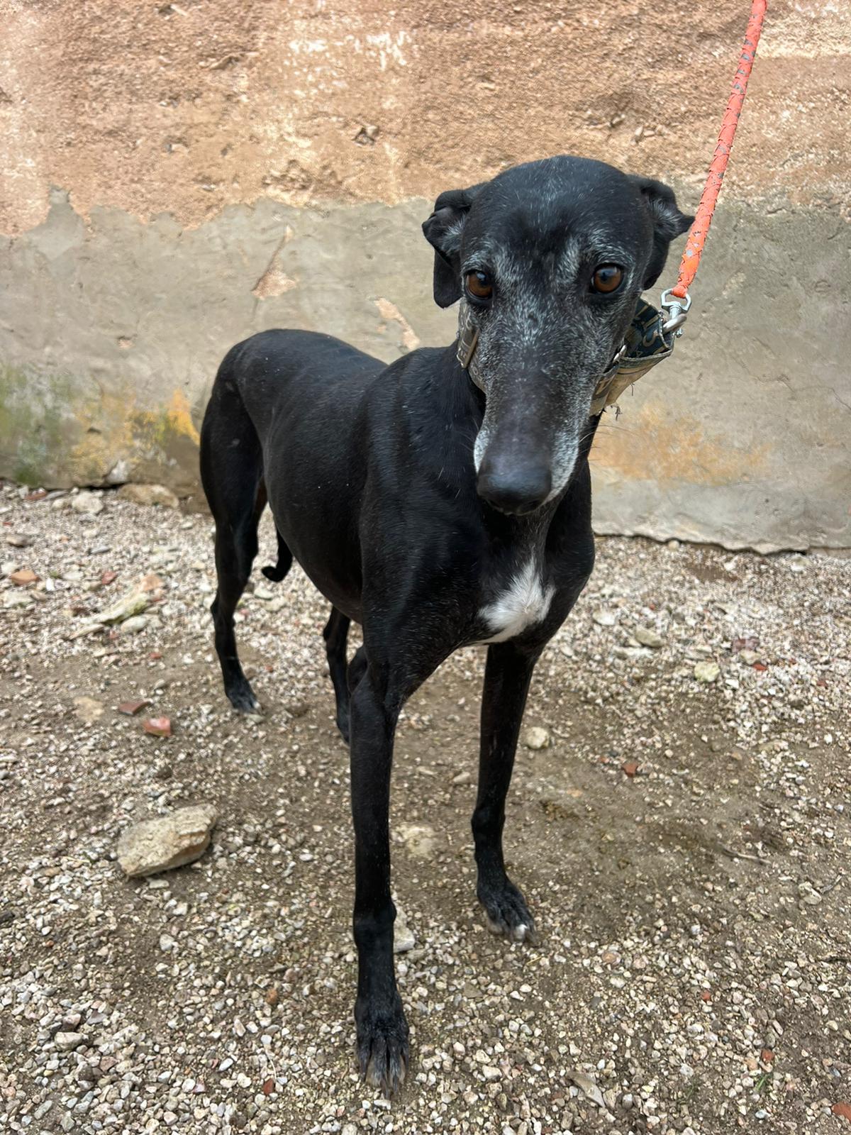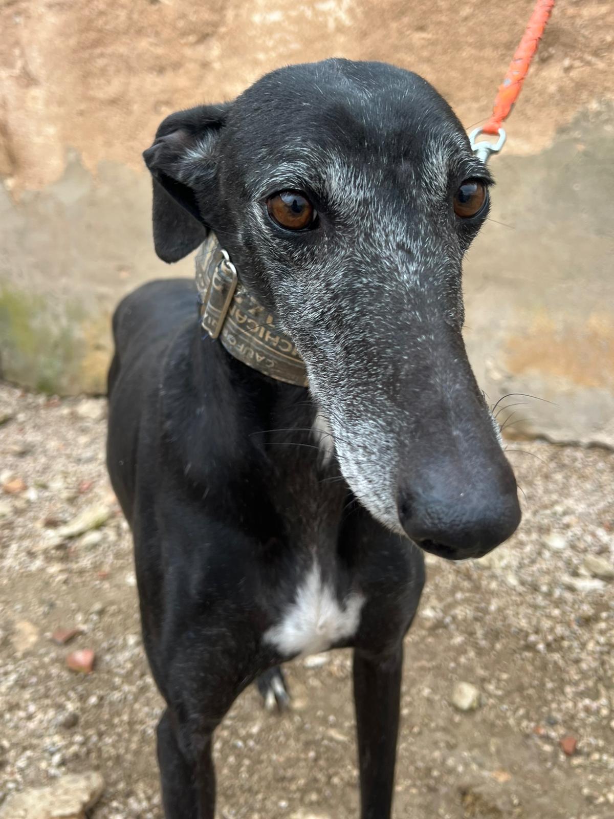 Este dulce galgo lleva un año y medio esperando un hogar definitivo en Amores Peludos.