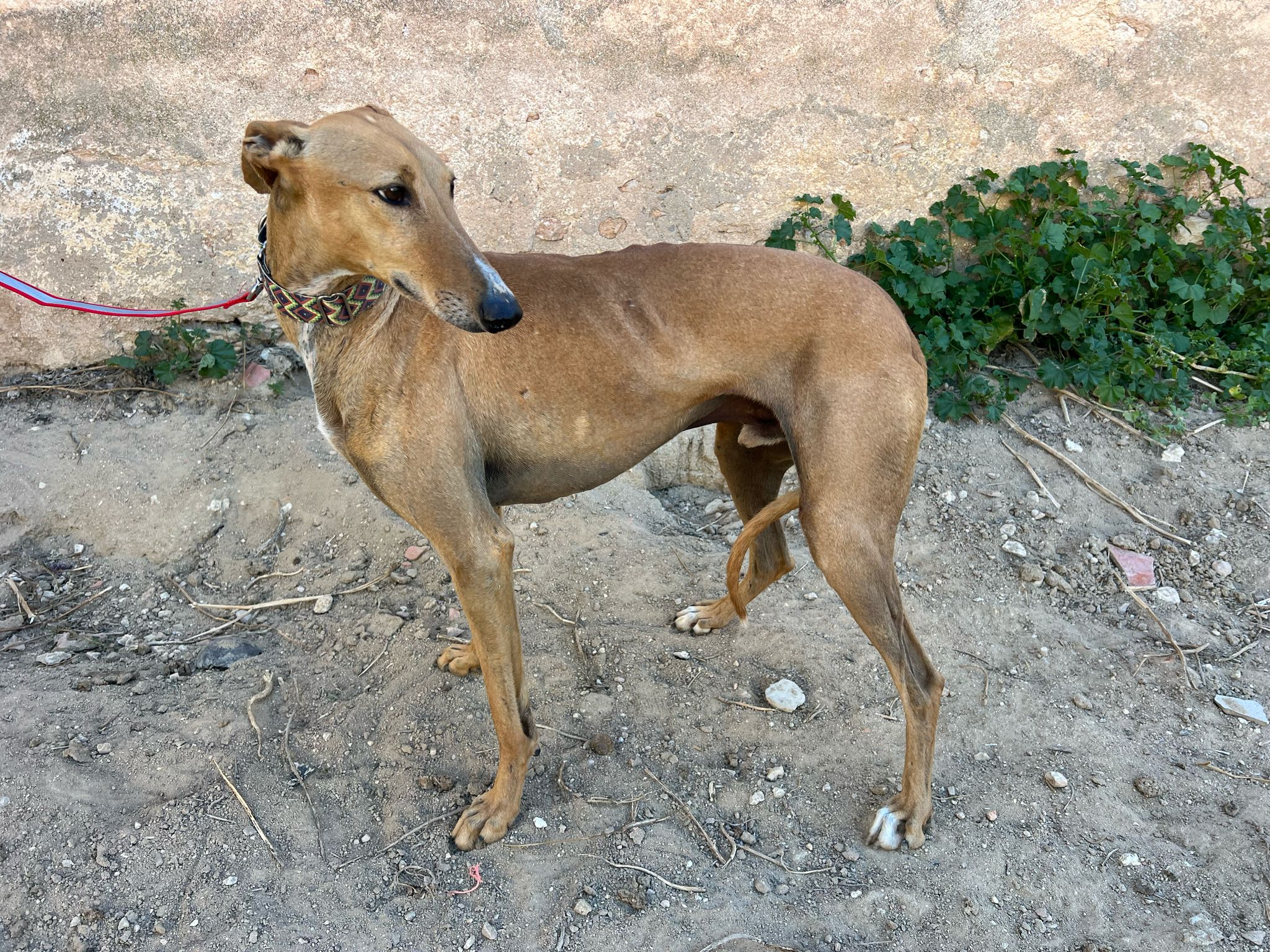 Es un galgo asustadizo que necesita gente con experiencia, pero poco a poco va cogiendo mucha confianza en Lara.