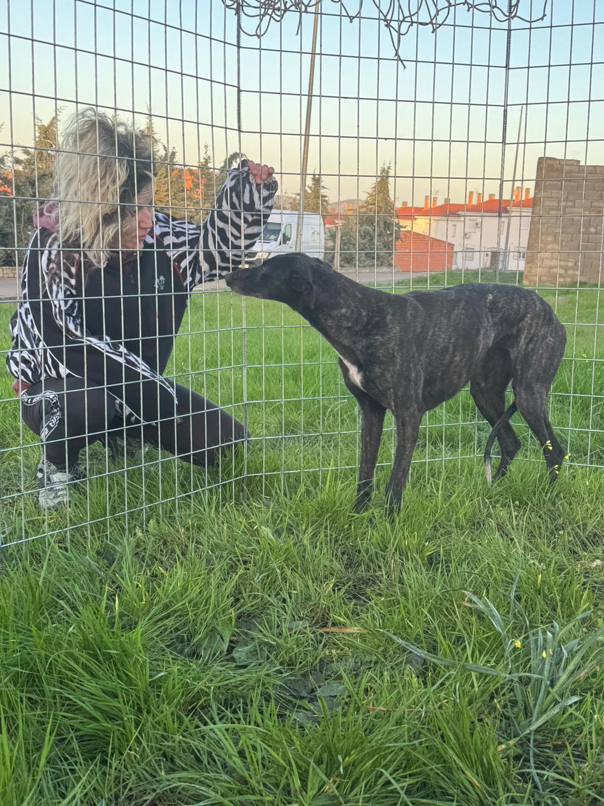 Oli es una hermosa galga recién rescatada. Lara ya la había visto hace un año en la calle, pero no pudo atraparla. ¡Finalmente, la misión de rescate tuvo éxito y la pequeña Oli fue rescatada! Puedes encontrar los videos y fotos de su rescate en esta página.