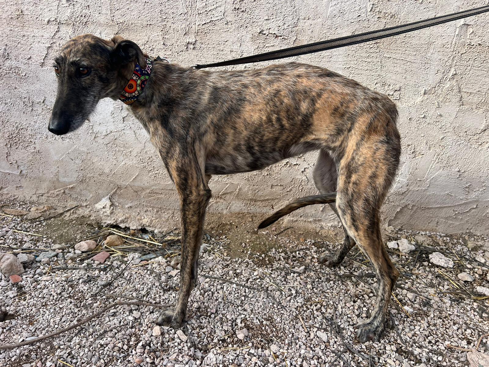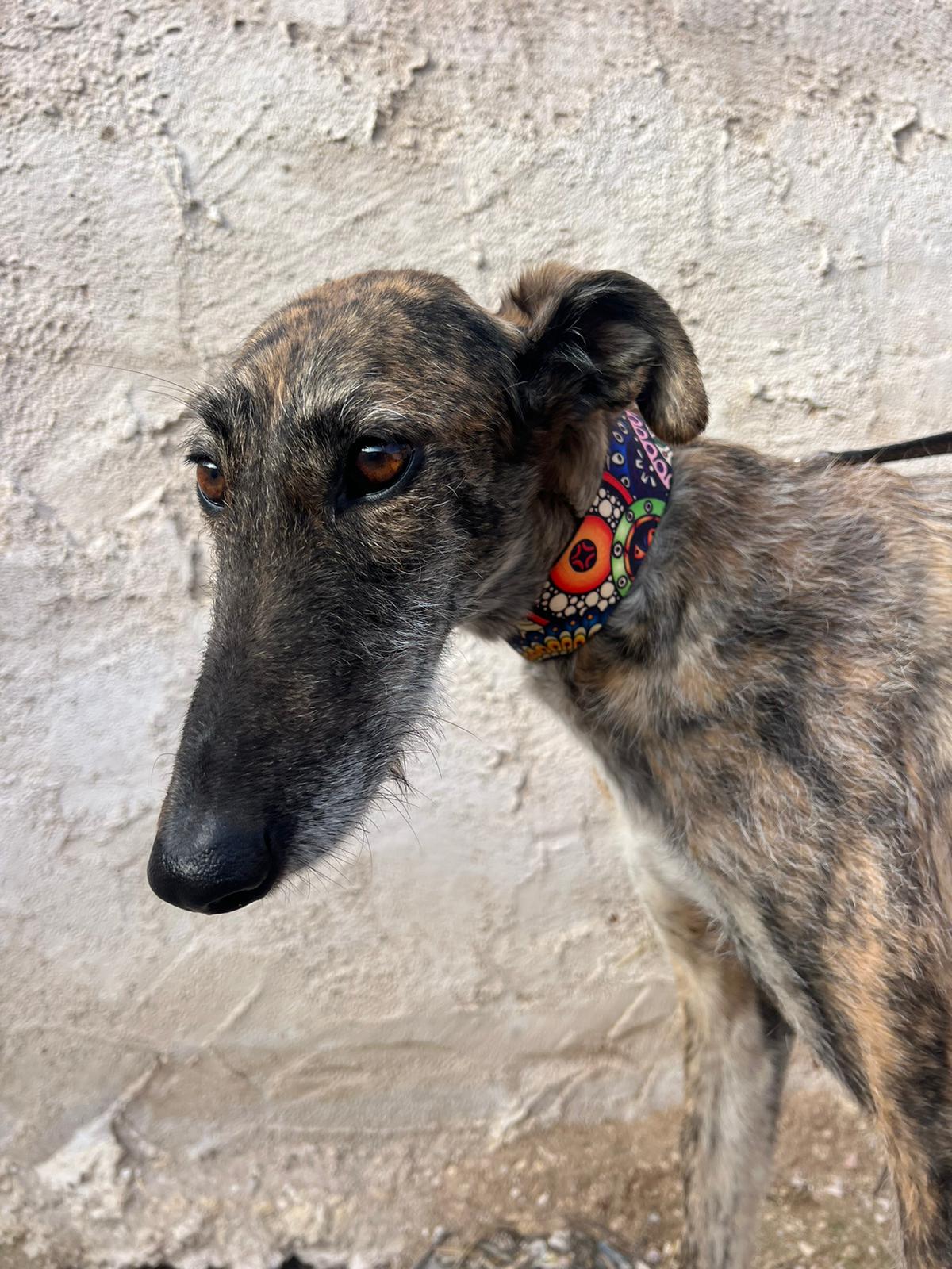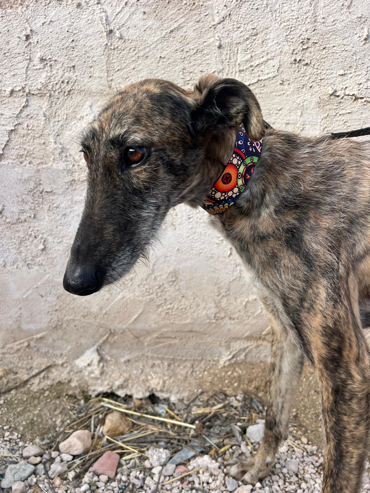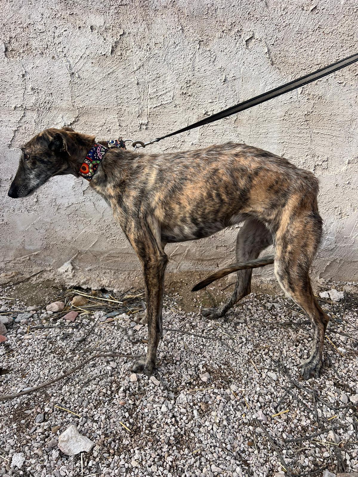 Es una perrita tranquila y dulce que se lleva muy bien con otros perros, pero necesita gente con experiencia.