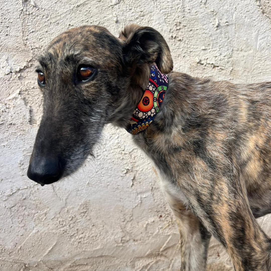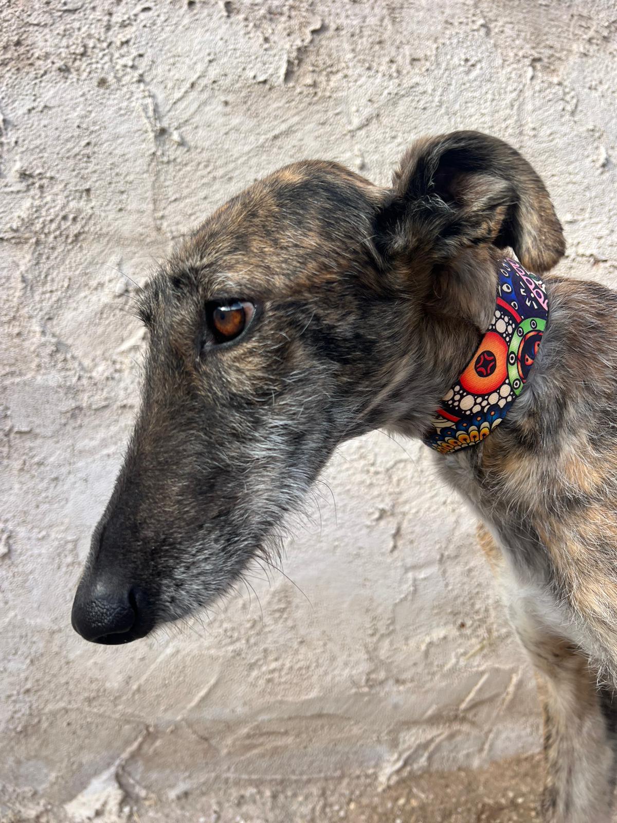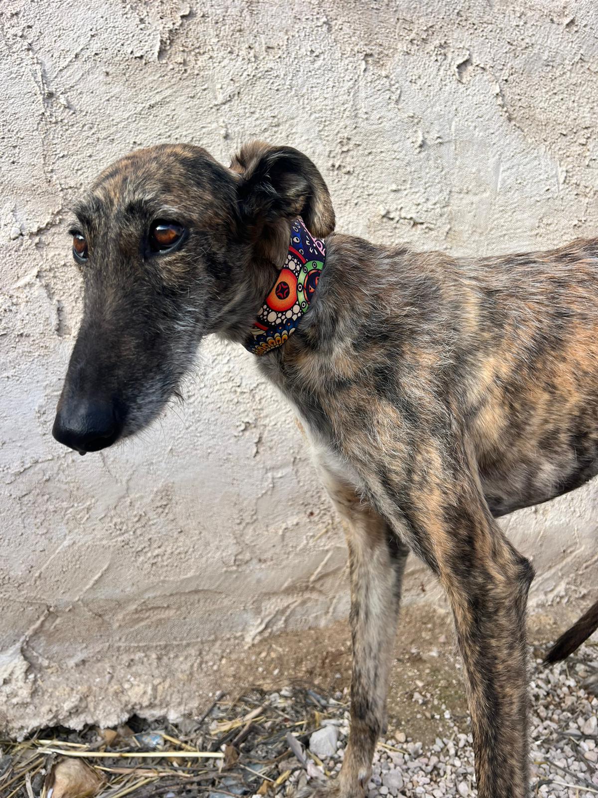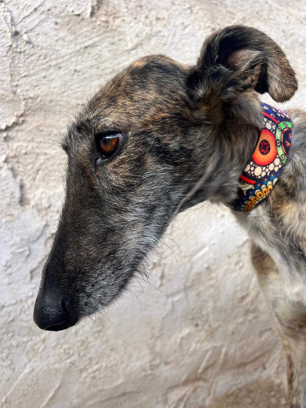 Es una perrita tranquila y dulce que se lleva muy bien con otros perros, pero necesita gente con experiencia.