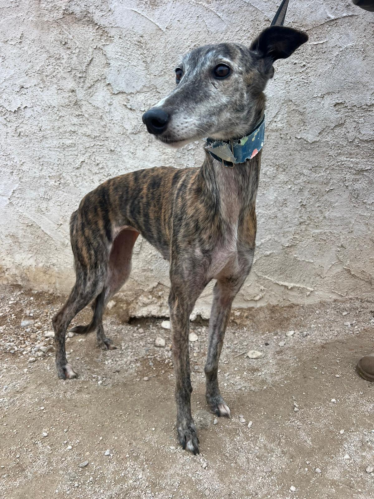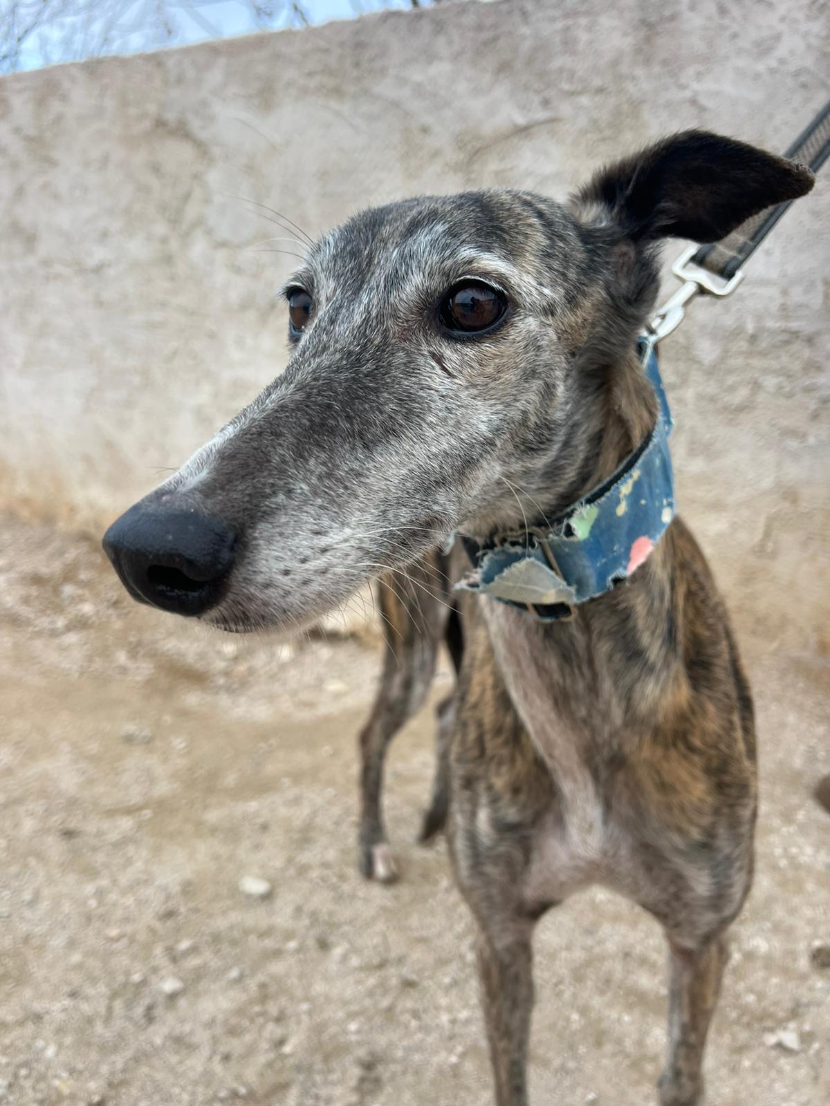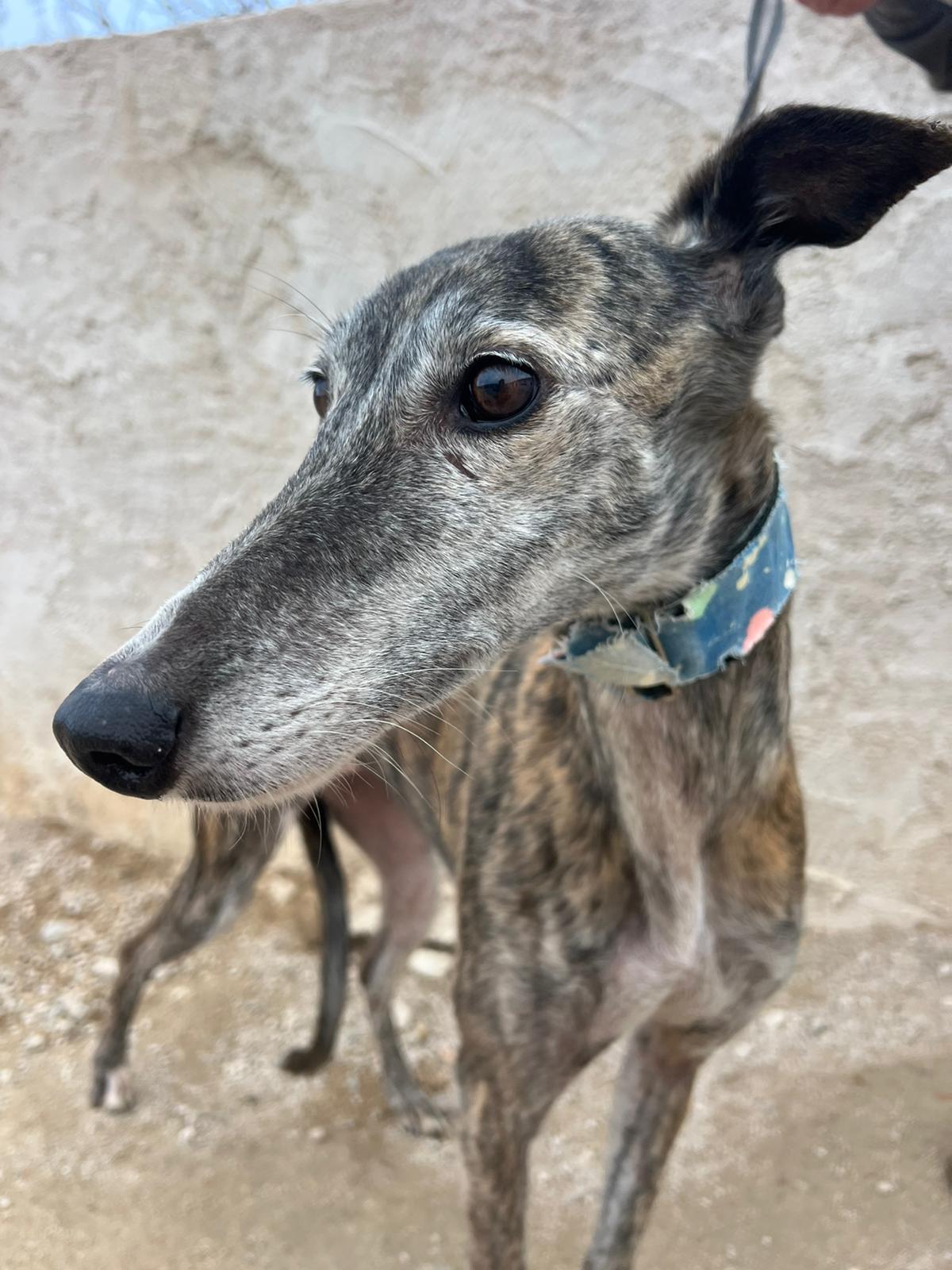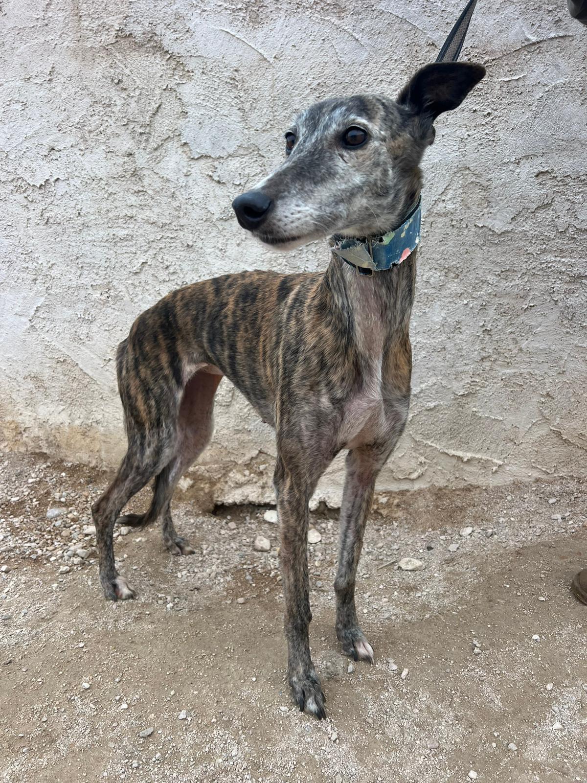Pimienta is very good with other dogs and was rescued from a galguero.