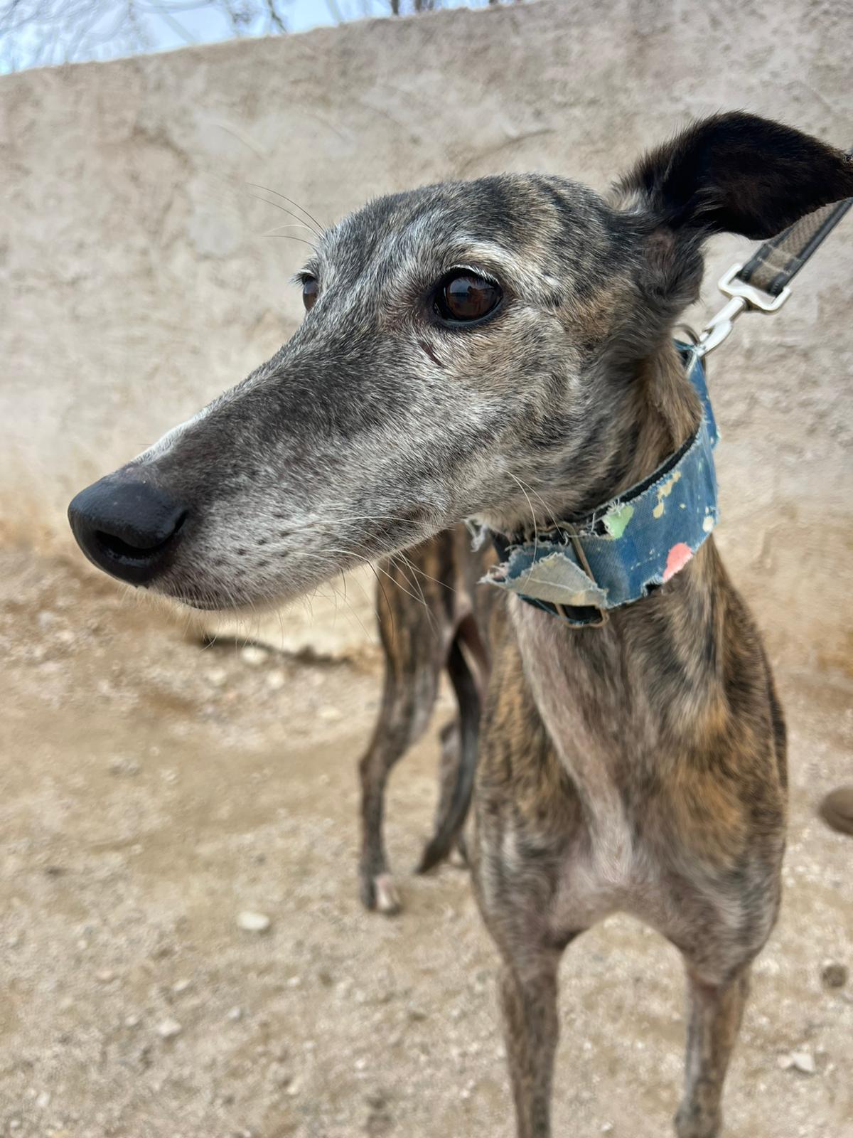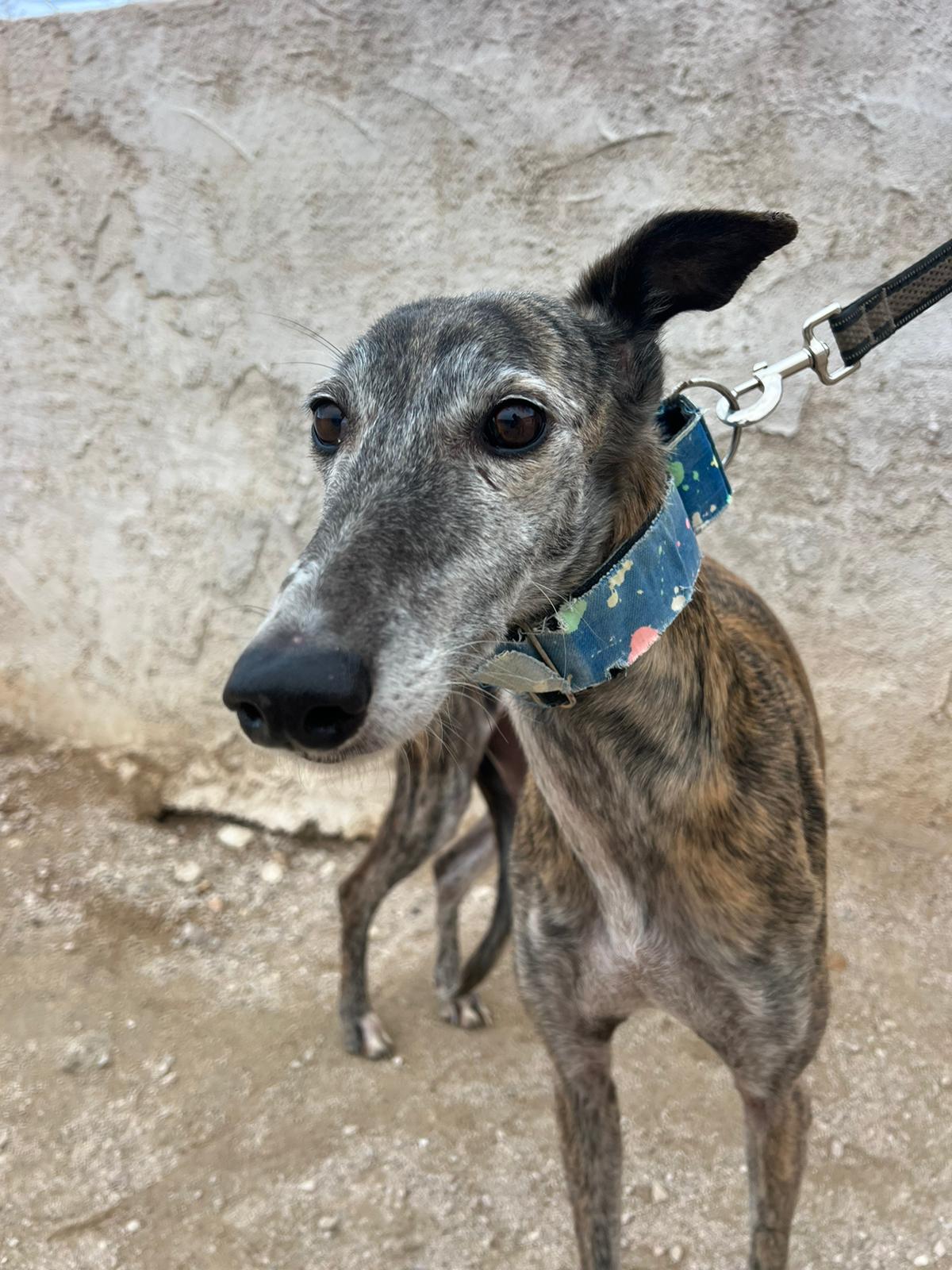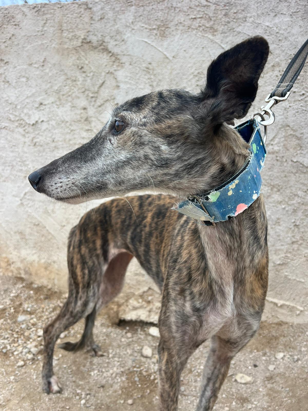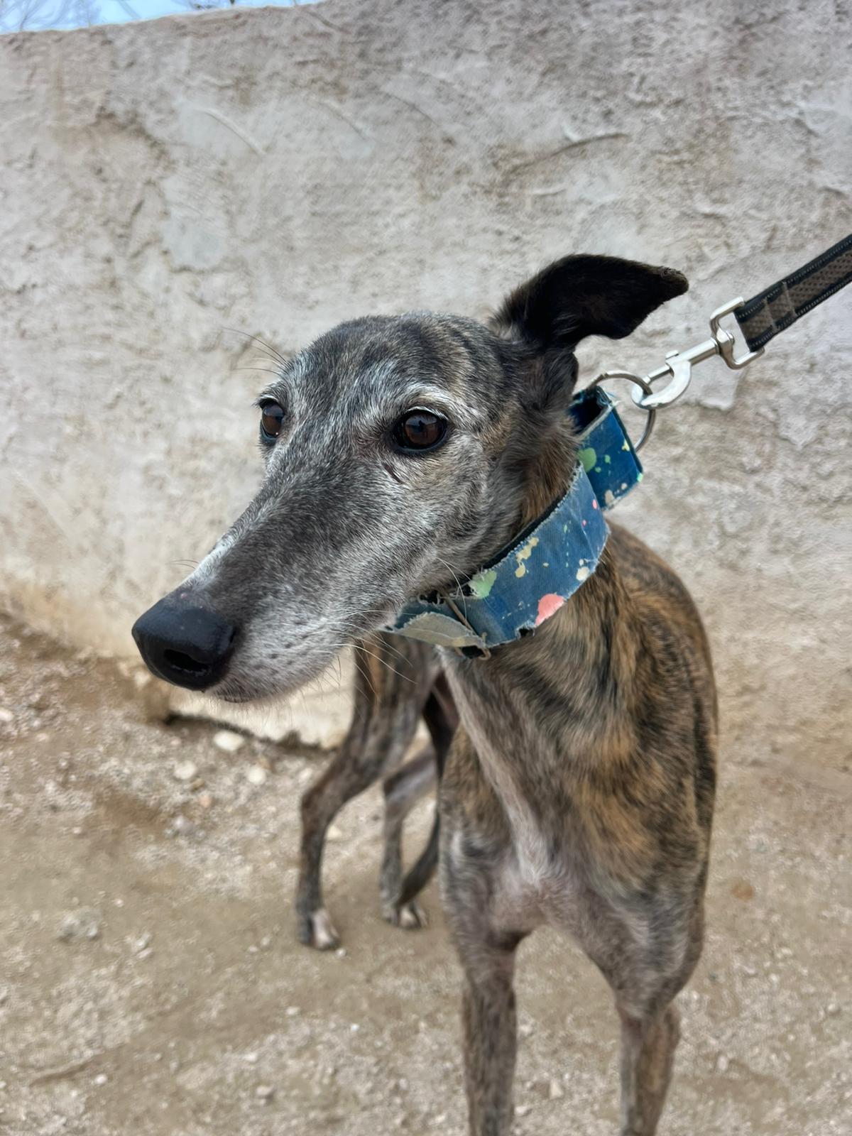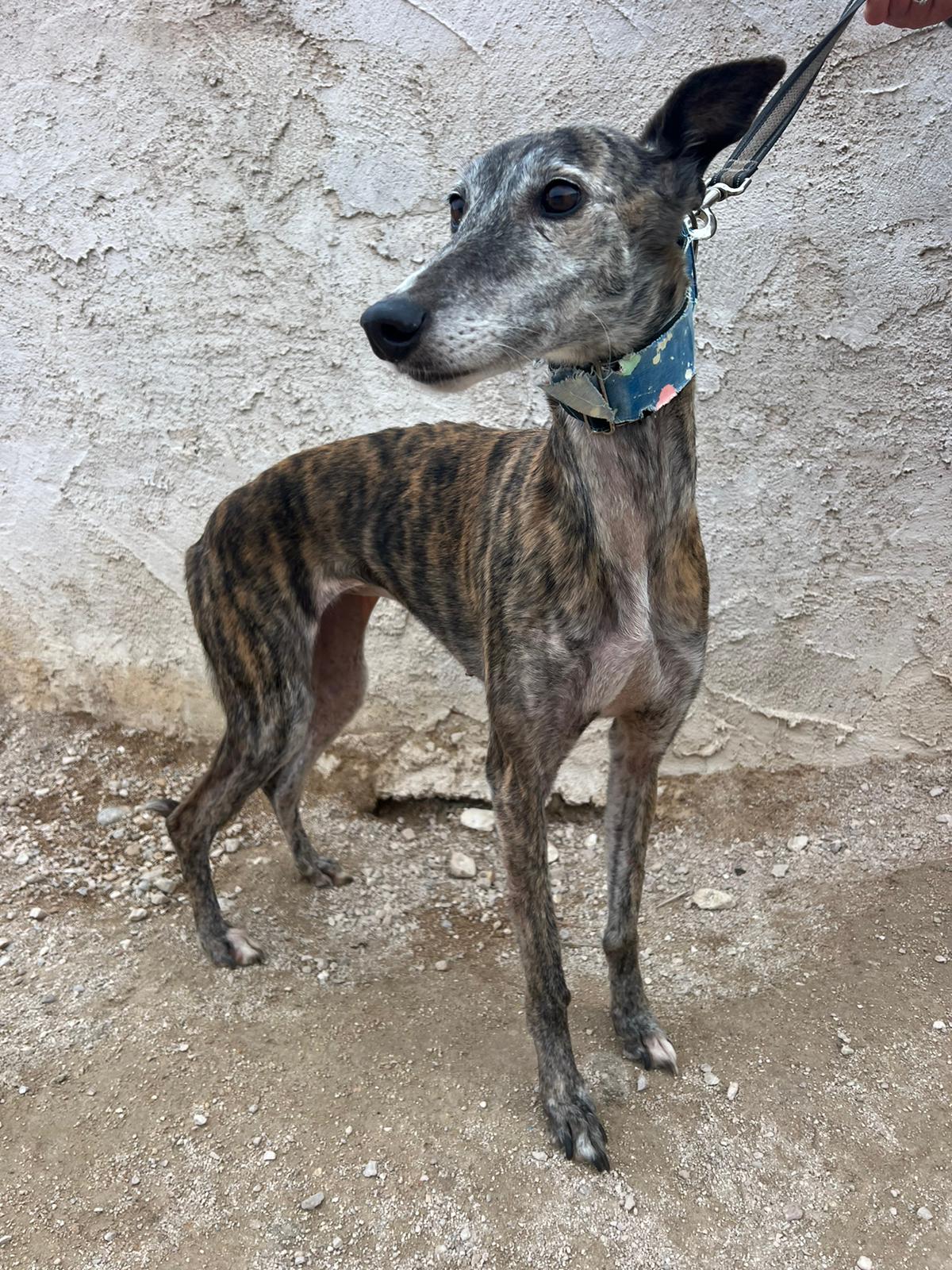 Pimienta is very good with other dogs and was rescued from a galguero.