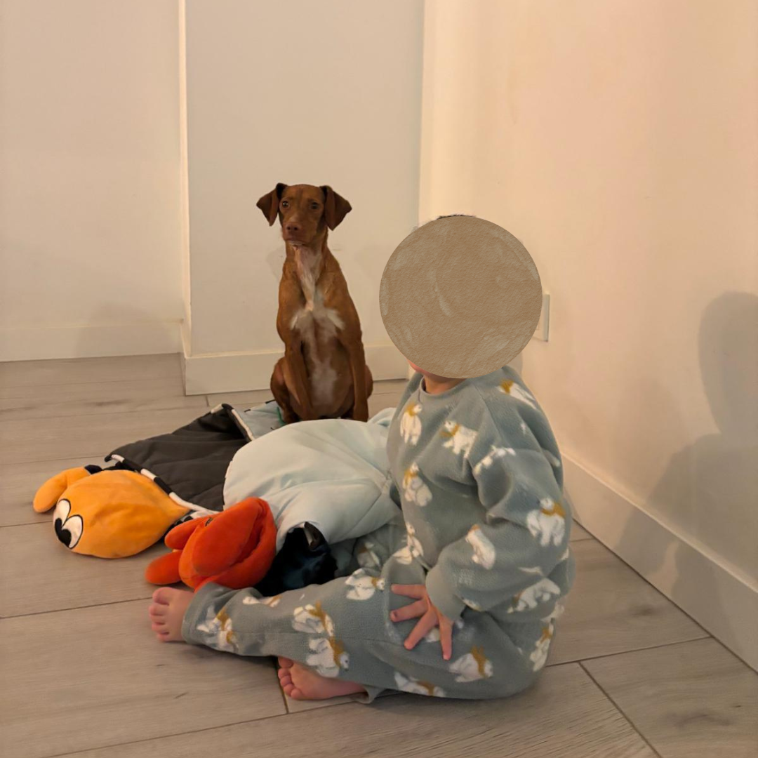 Lara la llevó a conocer a sus amigos y niños, y se portó de maravilla con ellos. ¡Le encantan los niños!